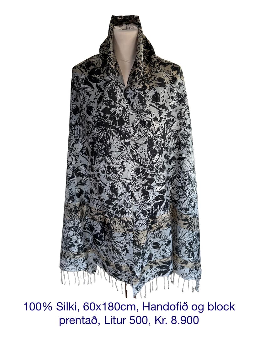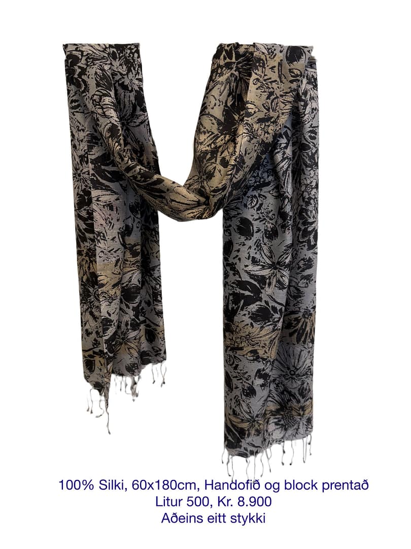 100% Silki, 60x180cm, Handofið og block prentað, Litur 502